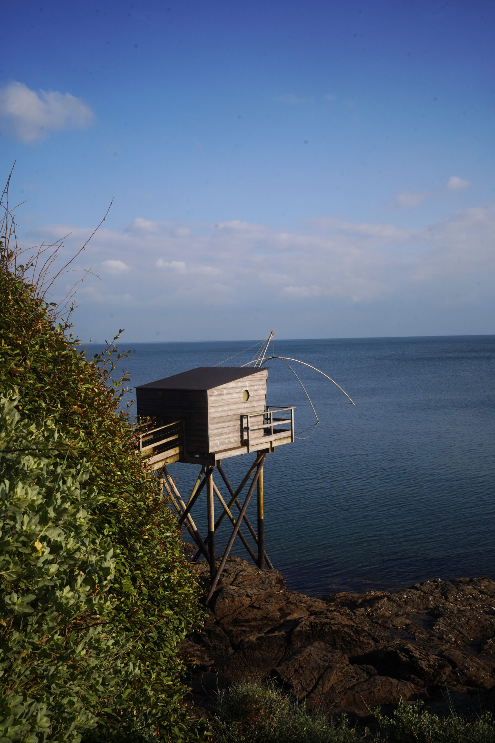 La cabane est peinte d’un pâle bleu turquoise, les pilotis qui la maintiennent en hauteur sont faits de poteaux croisés comme un échafaudage. Un grand filet de pêche, un peu carré, est suspendu en hauteur, comme prêt à être déployé à tout moment. D’ailleurs, cela s’appelle le carrelet : il est immergé pendant que la mer est haute puis retiré à marée basse. Ensuite, c’est la surprise : il peut contenir bars, dorades, crevettes, crabes, moules et tout un tas d’autres poissons et coquillages.